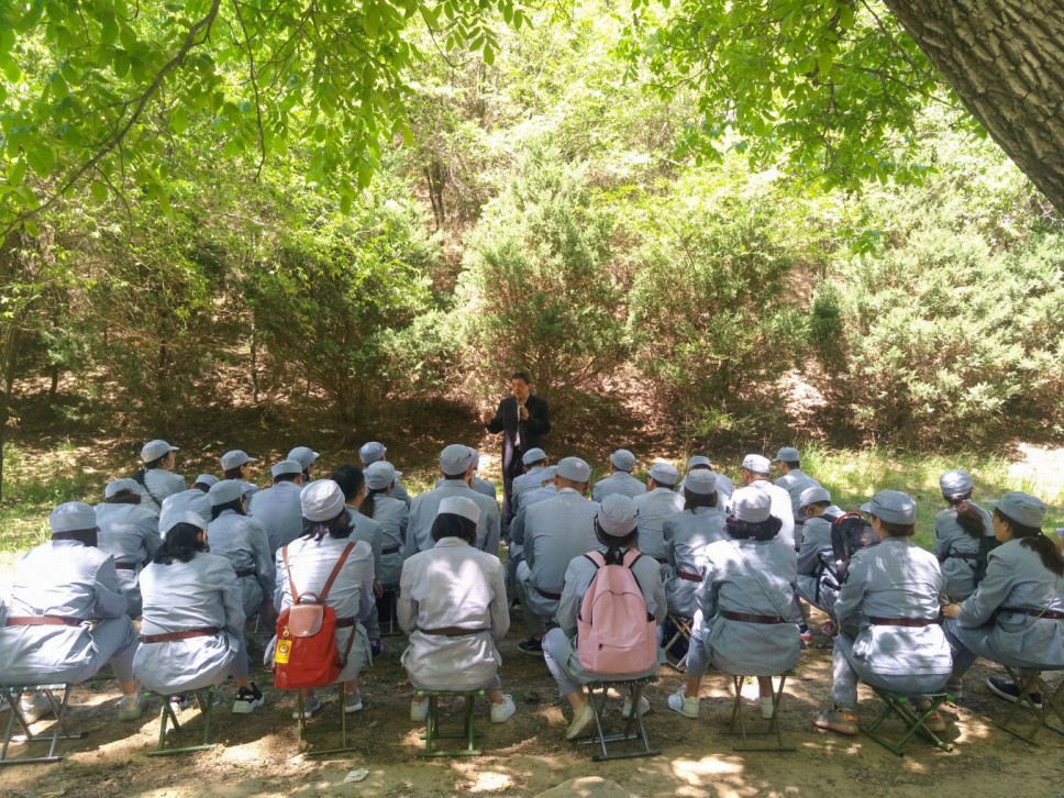 每到一處革命舊址,我們都要坐在小板凳上,聆聽(tīng)各個(gè)老師的悉心教學(xué),仿佛回到了那個(gè)年代,即使風(fēng)吹日曬,即使條件艱苦,學(xué)習(xí)的熱情也永不退減。在張思德雕像下,郭隨萬(wàn)老師的《張思德及其為人民服務(wù)精神啟示》主題黨課,讓我們深刻理解了張思德精神的內(nèi)涵:對(duì)工作毫無(wú)怨言,勤勤懇懇踏踏實(shí)實(shí)工作的精神;對(duì)同志真心誠(chéng)意,處處與人為善,時(shí)時(shí)助人為樂(lè)的精神;對(duì)人民盡心盡力,一心一意為人民服務(wù)的精神。革命時(shí)期的共產(chǎn)黨員,他們?yōu)榱它h,為了人民,隨時(shí)可以奉獻(xiàn)自己的一切;他們就像“清涼山上的草一樣”,平凡、普通,思想?yún)s偉大、高尚。在楊家?guī)X的樹(shù)蔭下,霍雯老師的《延安時(shí)期水乳交融的黨群干群關(guān)系》主題黨課,生動(dòng)活潑地講述了延安時(shí)期黨中央及毛澤東等領(lǐng)導(dǎo)干部通過(guò)擁民、愛(ài)民、與人民群眾建立起水乳交融、血肉相連的關(guān)系,我們的革命才逐漸由弱到強(qiáng),由局部勝利到逐步取得全面勝利。在棗園的墻邊,劉金峰老師的《窯洞里有馬列主義》主題黨課,詼諧幽默的小故事講述了毛澤東在山溝溝里的窯洞中,領(lǐng)導(dǎo)全黨學(xué)馬列、用馬列,創(chuàng)作了大量馬克思主義中國(guó)化的著作的艱苦奮斗場(chǎng)景。如今我們?cè)谙硎芨锩鼊倮麑?shí)的時(shí)候,莫忘“又學(xué)習(xí),又玩?!?,莫忘踐行群眾路線,莫忘全心全意為人民服務(wù)。