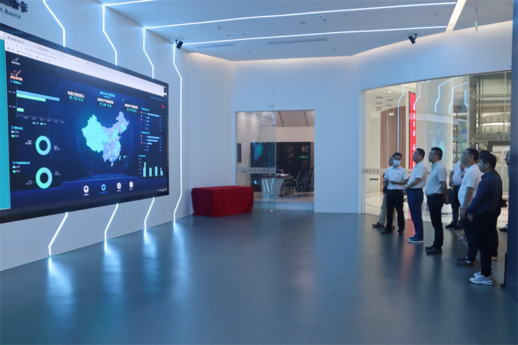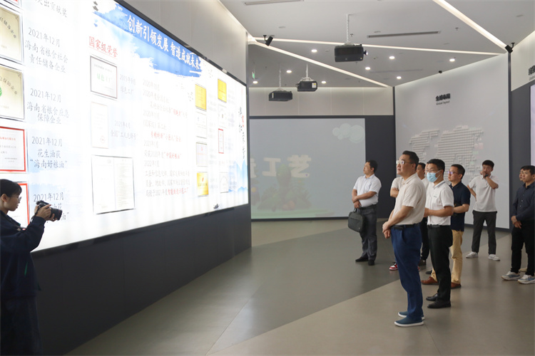 考察組一行實地參觀了澳斯卡智慧工廠、大數(shù)據(jù)管理系統(tǒng)、精煉車間、小包裝車間等點位。