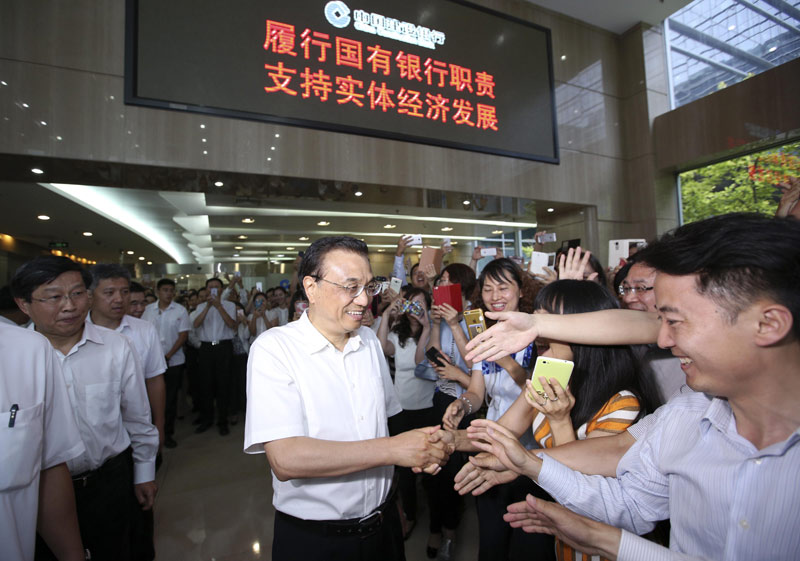 圖為李克強總理2016年6月20日下午到中國建設(shè)銀行考察。