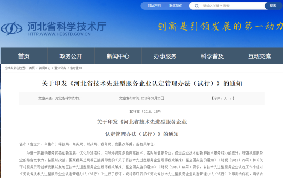 河北省科技廳網(wǎng)站相關(guān)信息截圖