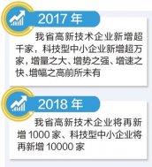 制圖/展茂光 2018年我省高新技術企業和科技型中小企業將分別再新增1000家、10000家。記者從2月5日召開的全省科技工作會議上獲悉,到今年底,我省高新技術企業將超過4000家,科技型中小企業