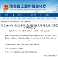 園區(qū)企業(yè)河北唯沃榮獲2017“創(chuàng)客中國(guó)”創(chuàng)新創(chuàng)業(yè)大賽河北賽區(qū)三等獎(jiǎng)
