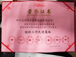 在本年度舉辦的河北省第三屆創(chuàng)新創(chuàng)業(yè)大賽暨第四屆中國創(chuàng)新創(chuàng)業(yè)大賽(河北賽區(qū))決賽中,邯鄲高科園憑出色組織工作,榮獲大賽的組織工作先進集體獎。 河北省第三屆創(chuàng)新創(chuàng)業(yè)大賽暨第四